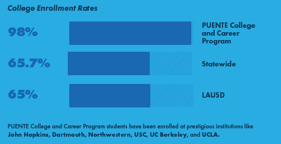 · Reached a record 931 participants in the PUENTE College and Career Program, with a 98% college enrollment rate